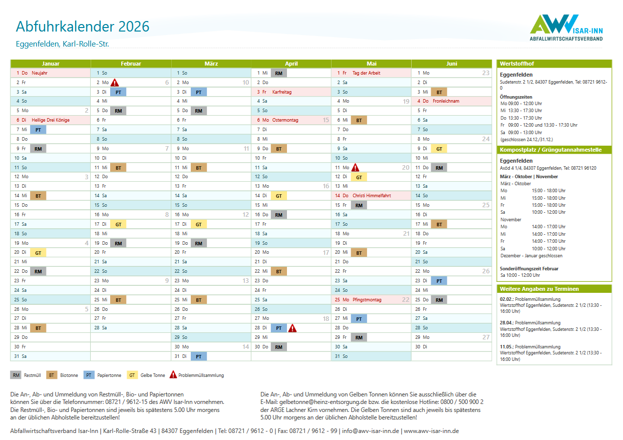 Der Abfuhrkalender 2026 steht ab sofort für die Landkreise Rottal-Inn und Dingolfing-Landau online auf unserer Website zur Verfügung.
