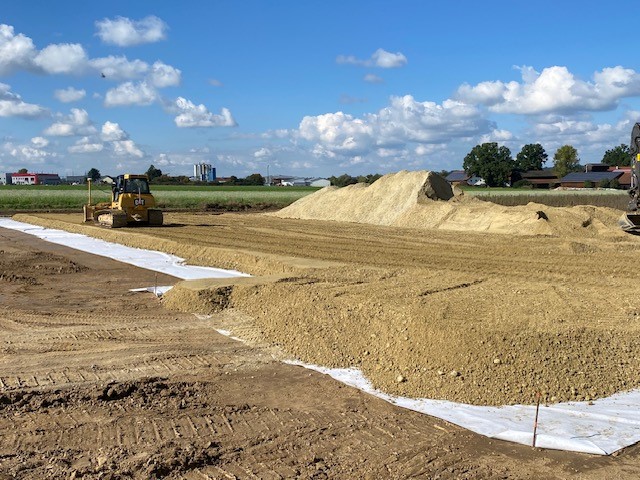 > Die Erdarbeiten im Bereich der Lagerhalle haben begonnen.